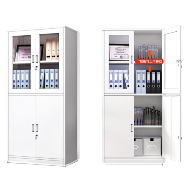 奈高/NAIGAO 850*390*1800 文件柜 上玻璃门下铁门4门钢制二层柜